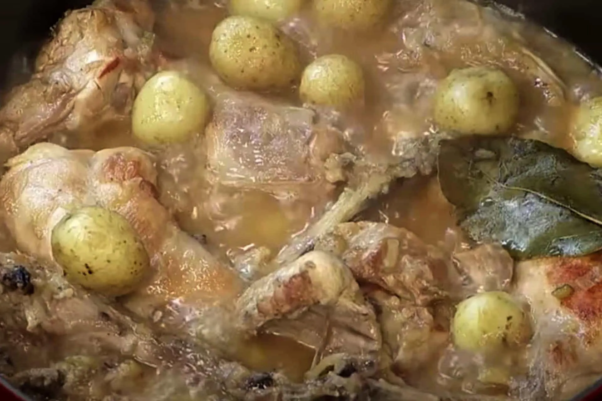 Conejo escopetero. Ingredientes: Un conejo Una cebolla grande Doce almendras tostadas Un vaso de vino blanco Media copa de coñac Aceite Ajo, perejil, sal Un trozo de hígado del conejo Un trozo de laurel pequeño Preparación: El con ...